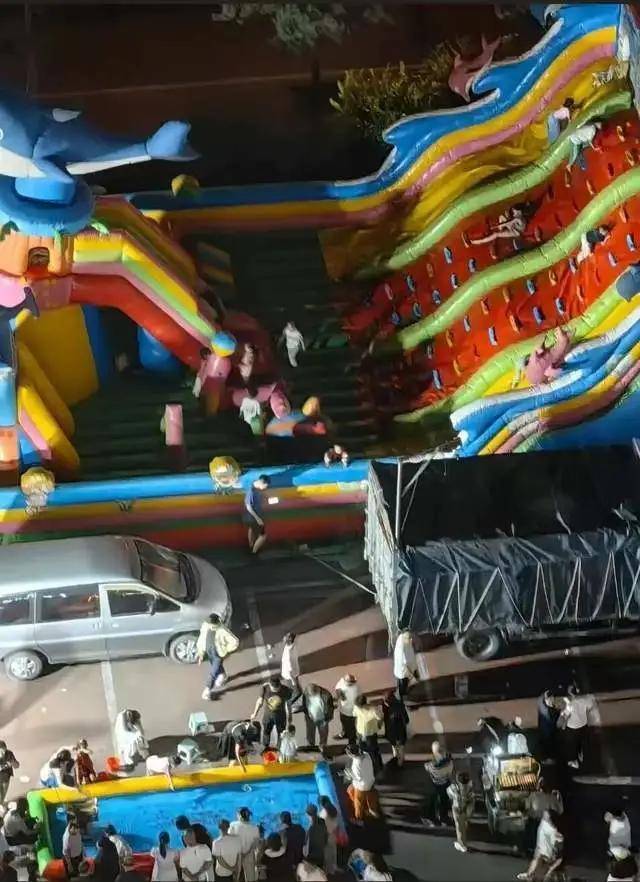 活动负责人:当晚风很大,大树被连根拔起;充气滑梯被刮出七十多米