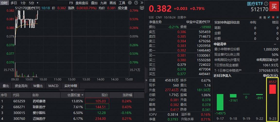 A股医疗板块同步企稳,规模最大医疗ETF(512170)盘初一度上探1%,成份股方面,CXO概念泰格医药反弹逾4%,医疗耗材股惠泰医疗涨超3%。值得一提的是,昨日板块深度调整区间,512170单日获超8500万元资金回流。